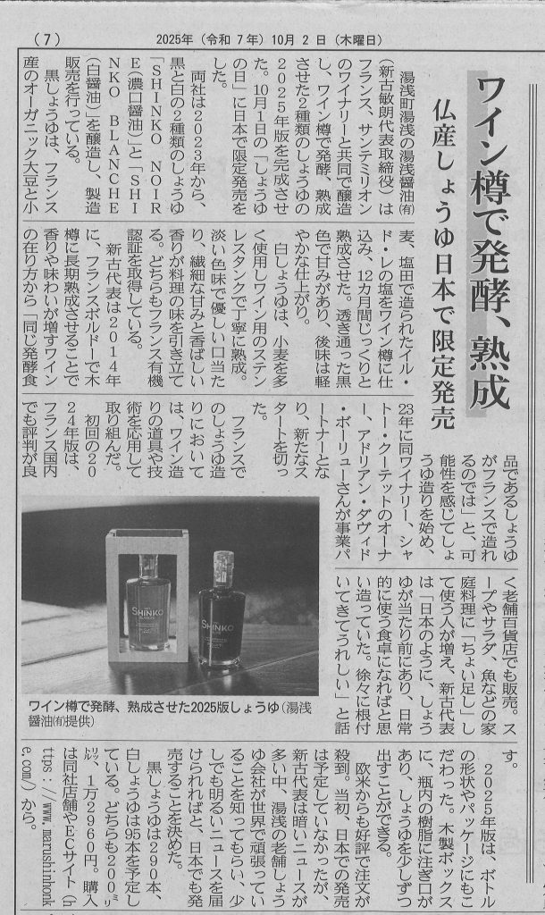 10月1日に発売のフランス産醤油SHINKO NOIRE /SHINKO BLANCHEについて
