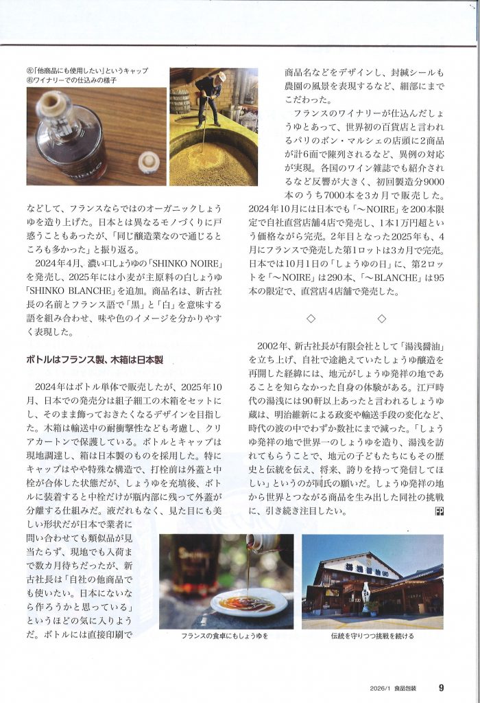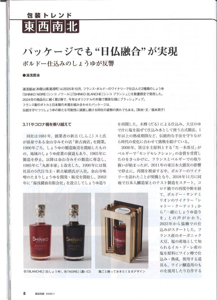 1月1日発行の業界専門誌【食品包装】にてフランス醤油を取り上げていただきました。