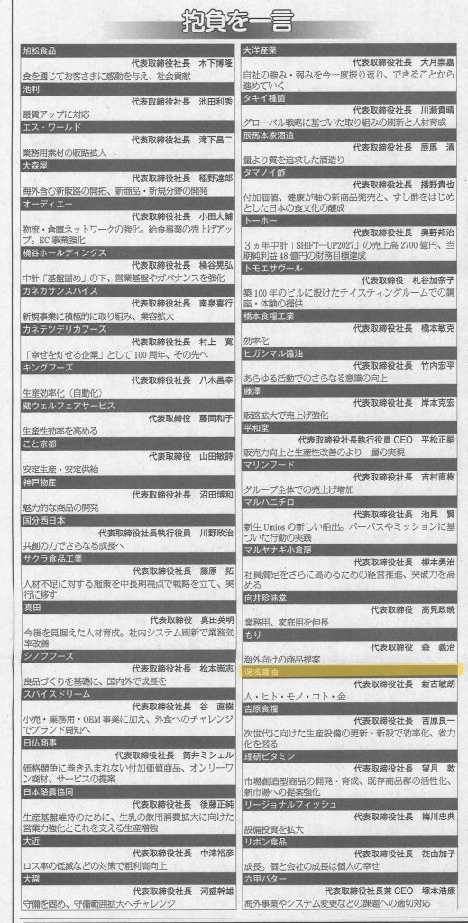 第二部『新年の抱負』に湯浅醤油が掲載されました。