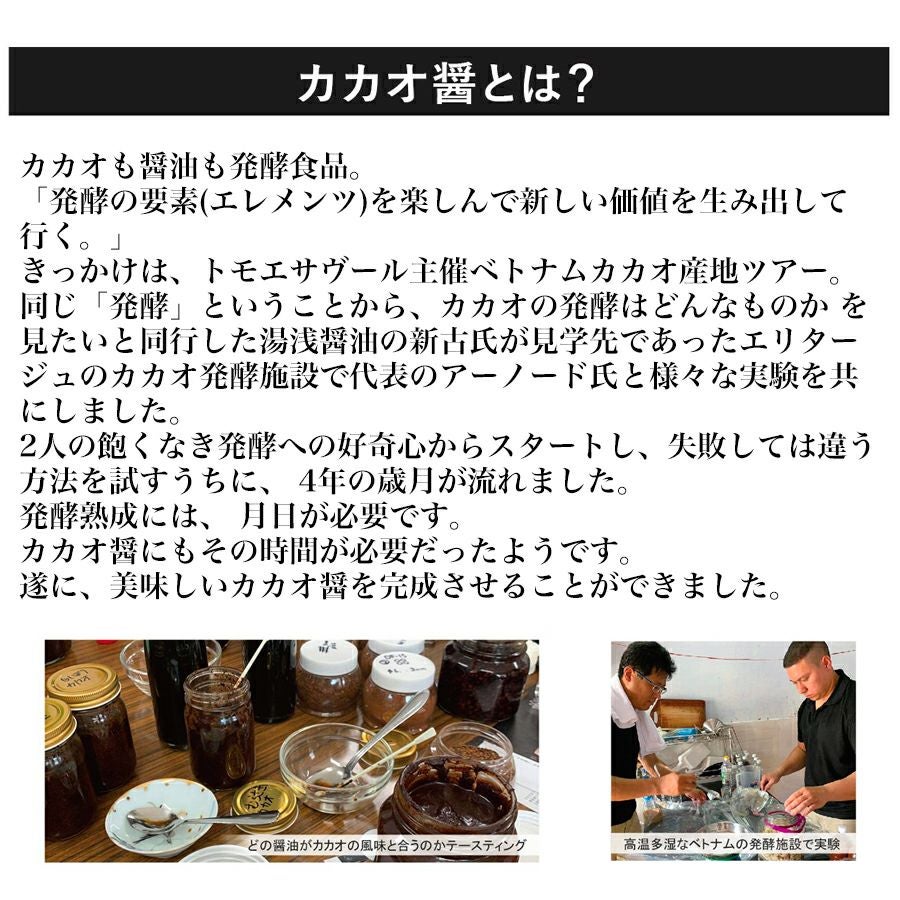 他の画像を見る 販売価格 ¥ 1,911 税込 お気に入りに登録する 数量限定 カカオと醤油が融合した世界初の新感覚調味料 CACAO JANG大阪ほんわかテレビで放送!新古敏朗と湯川福雄が経済大臣賞を受賞! 【数量限定】湯浅醤油 カカオ醤 ペースト 140g瓶入り ( チョコレート醤油 )
