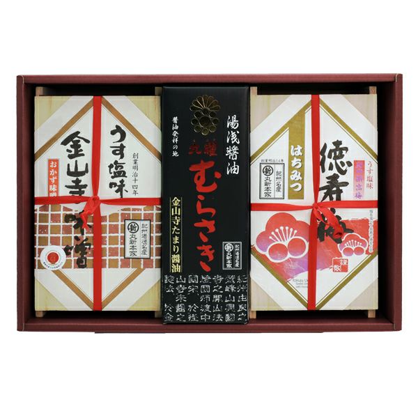 おいしいうす塩味金山寺味噌・湯浅醤油 九曜むらさき・うす塩梅干のギフト