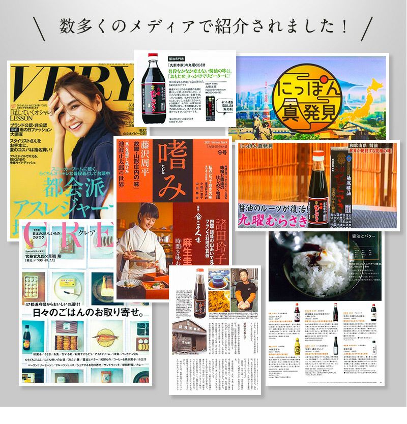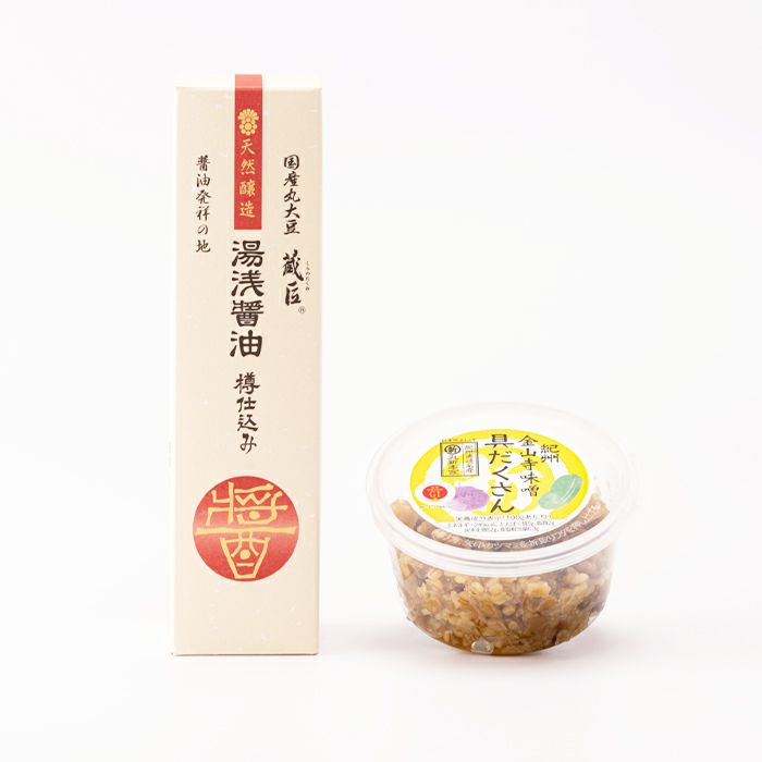 醤油の元祖。金山寺味噌のたまりを使用しているので、旨味たっぷり。さらっとしてたまり。減塩でまろやかなので人気です。寿司や刺身、おひたし、冷奴、湯葉、ステーキなどに。