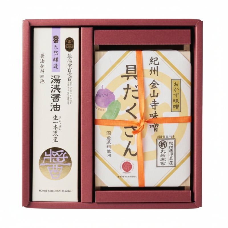 【贈答用 ギフト しょうゆ】 醤油・おかず味噌ギフト 雅 -みやび-【59408】 こだわり醤油と具だくさん金山寺味噌 限定 セット 送料込【限定】 送料込み 数量限定 同梱で送料無料! 販売価格 ¥ 5,920 税込 お気に入りに登録する