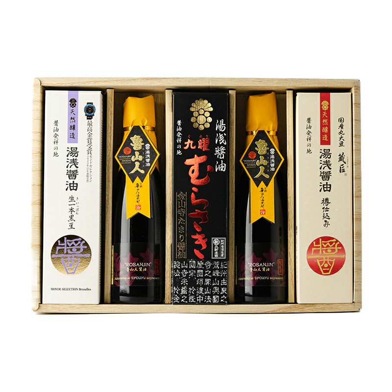 他の画像を見る 販売価格 ¥ 7,128 税込 お気に入りに登録する 数量限定 【贈答用 ギフト しょうゆ】 湯浅醤油ギフト 200ml 5本セット魯山人2本入り4種【58501】【醤油職人】【5代目】【新古敏朗】