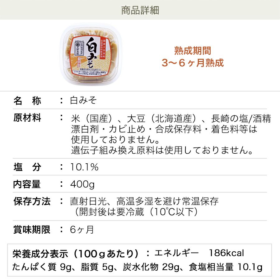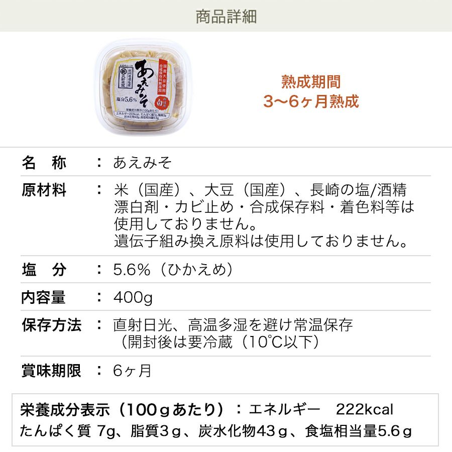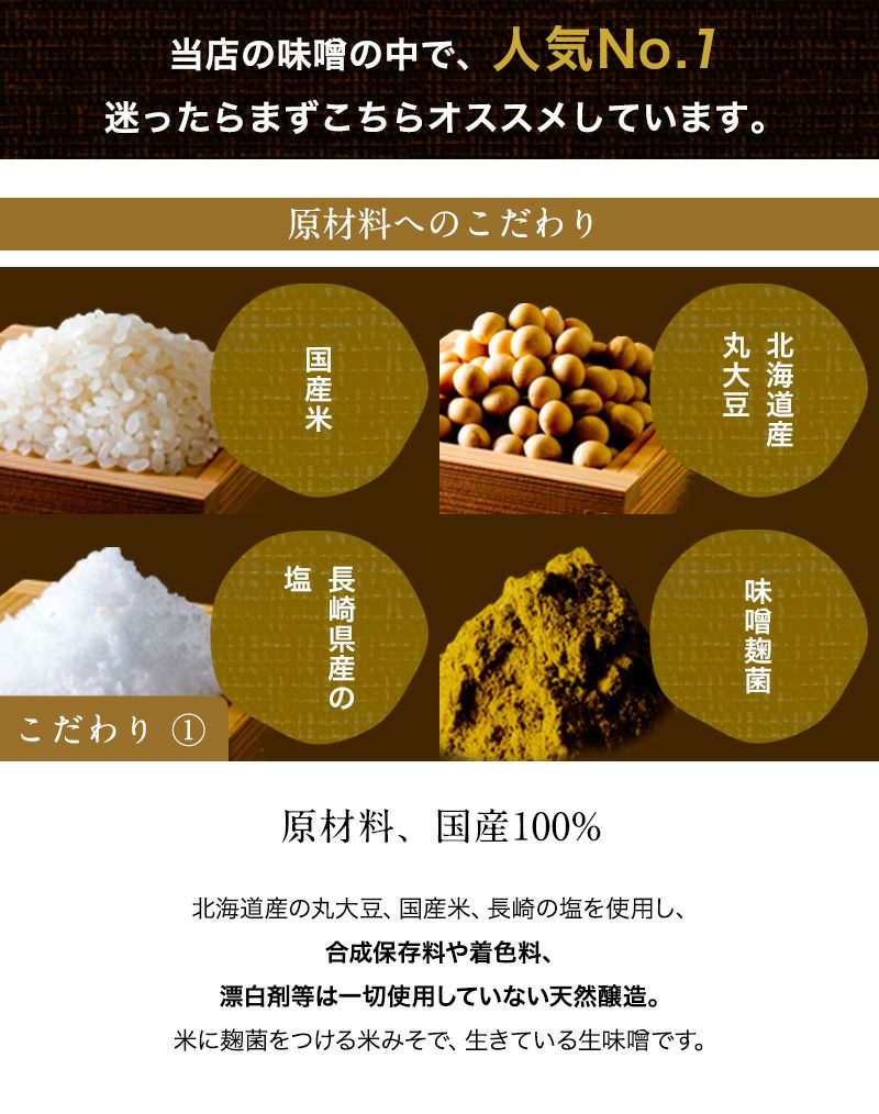 北海道産の丸大豆、国産米、長崎の塩を使用し、合成保存料や着色料、漂白剤等は一切使用していない天然醸造。 |