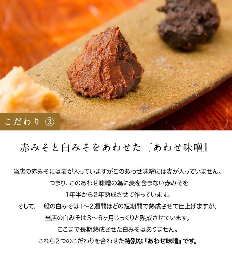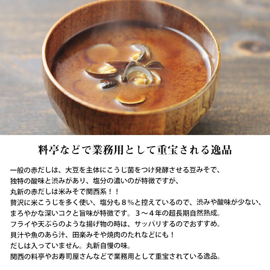 一般の赤だしは、大豆を主体にこうじ菌をつけ発酵させる豆みそで、独特の酸味と渋みがあり、塩分の濃いのが特徴ですが、丸新の赤だしは米みそで関西系!! |
