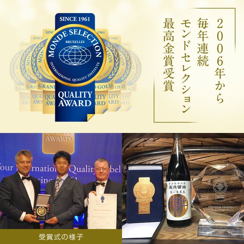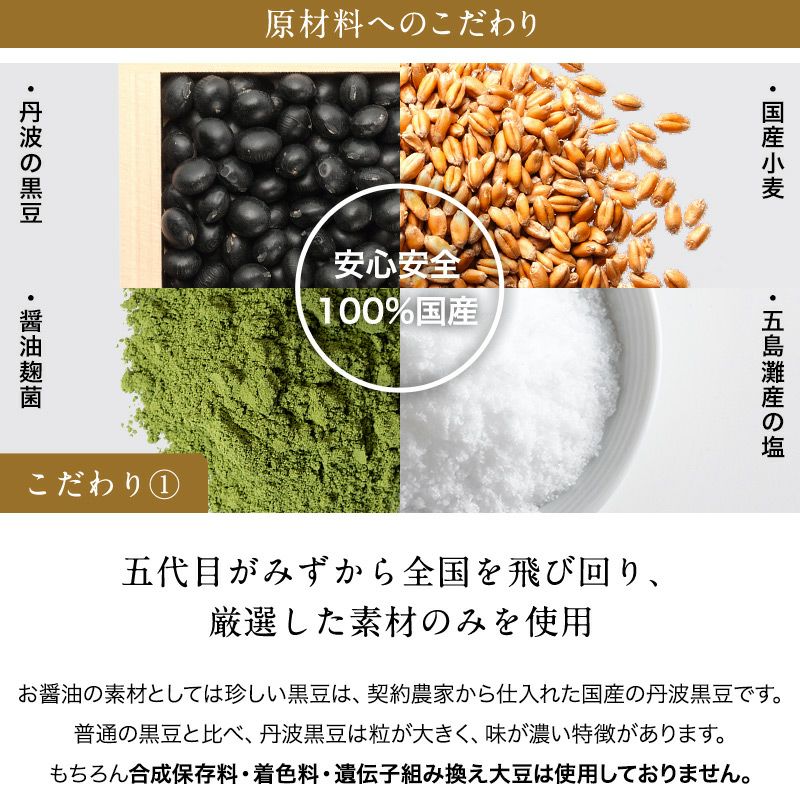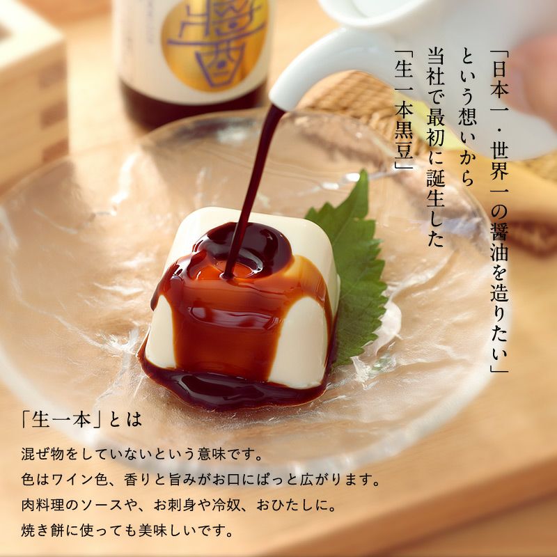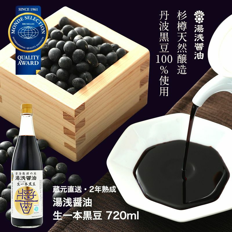 丹波黒豆で作っている濃厚な2年仕込みの醤油。安定した味と香りが高評価。