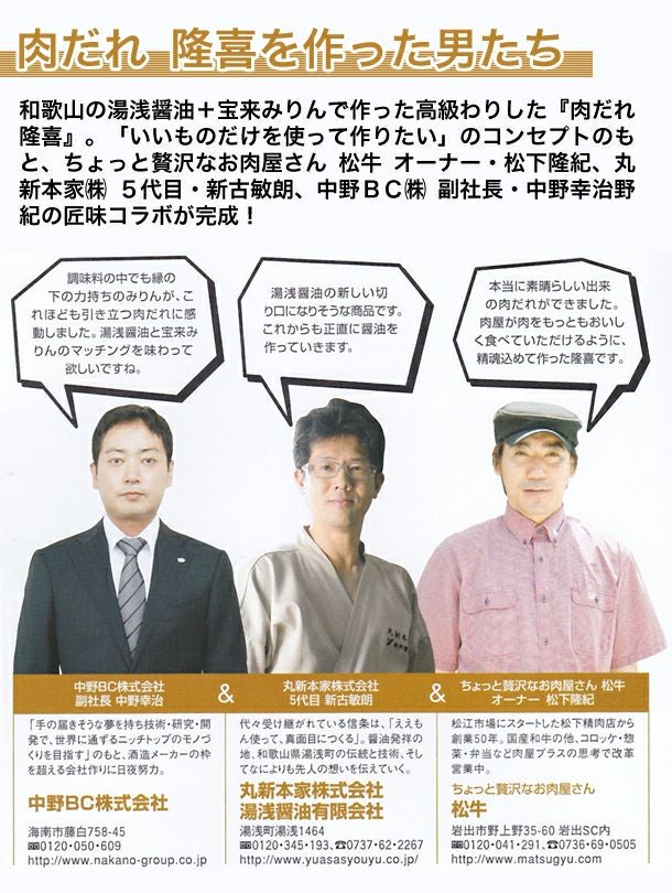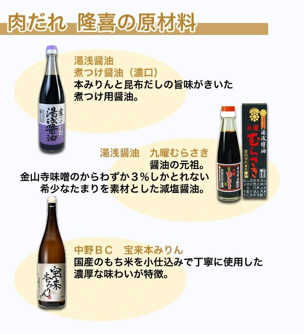 湯浅醤油と和歌山の酒造メーカー中野BCさんの宝来みりん使用。すき焼きはこれだけでOK!