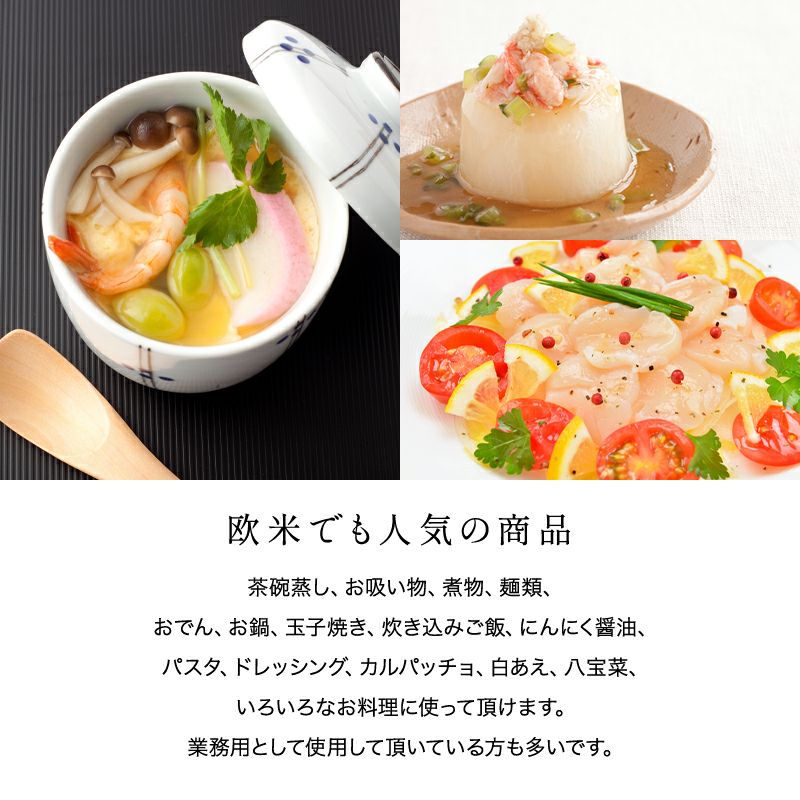 白だし醤油ベースに、ゆず果汁と南高梅を漬けた梅酢をブレンドしたつゆ。3倍濃縮。