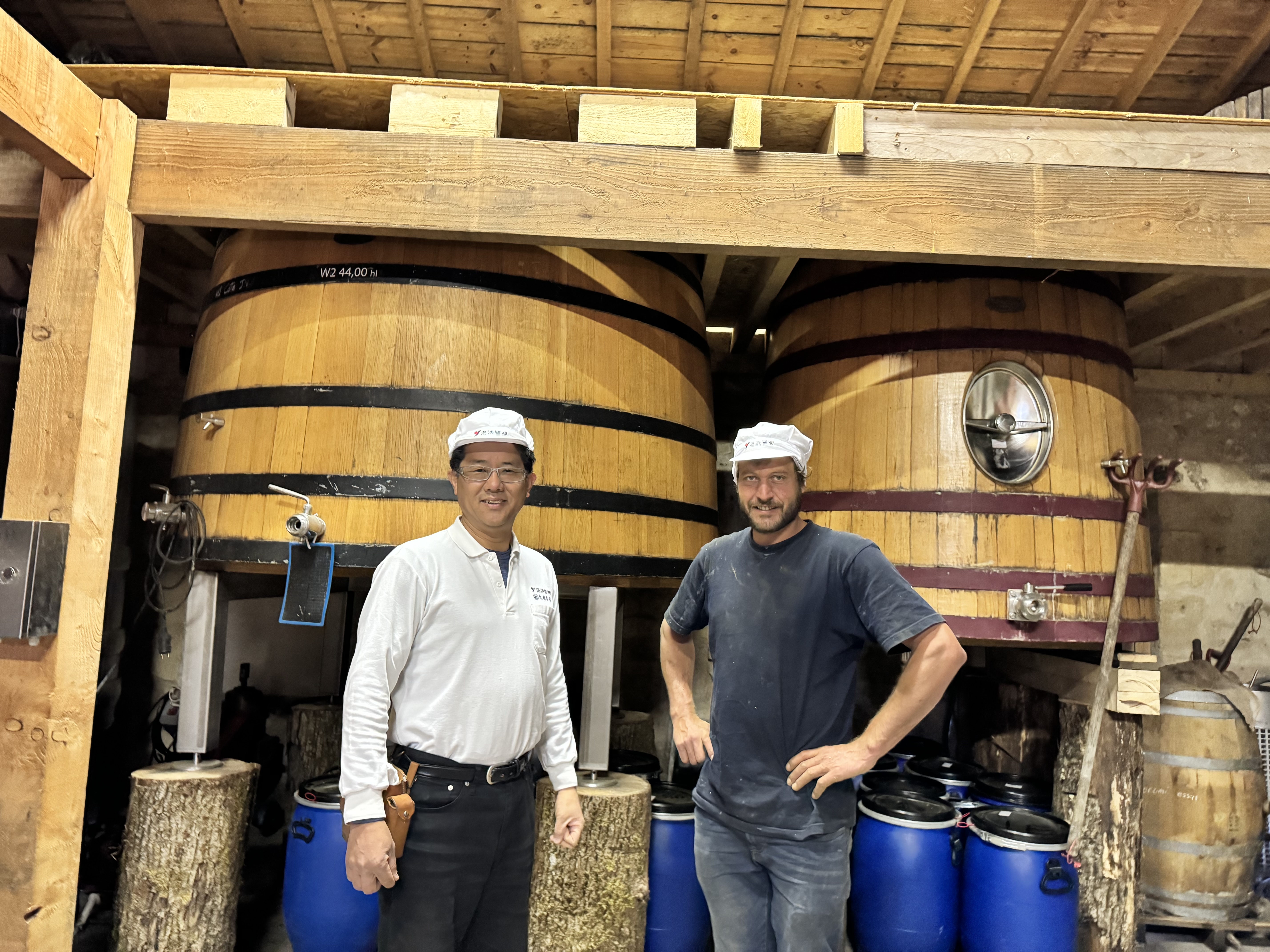 2014 年モンド・セレクションの受賞式がフランスのボルドーで開催され、5 代目新古敏朗が出席した時です。せっかく来たのだから「世界のワイン発酵の勉強をしたい」と思い、シャトー巡りをしました。現地でワインの醸造家を通訳に指名し、ワイナリーのオーナー達と発酵についての話をしました。